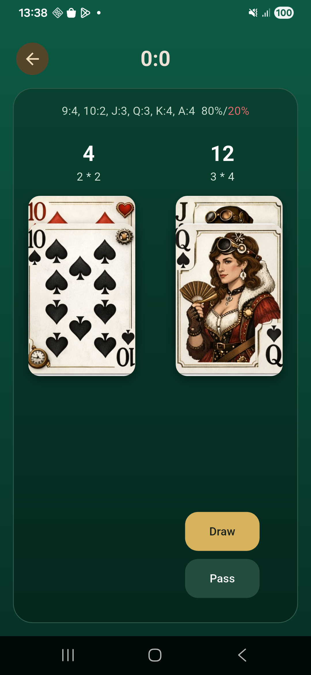 Draw match screen showing more cards and scores